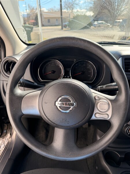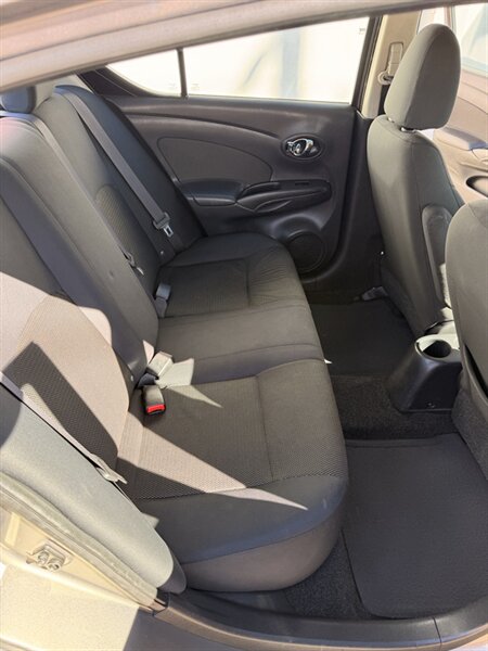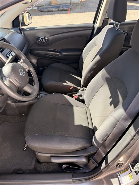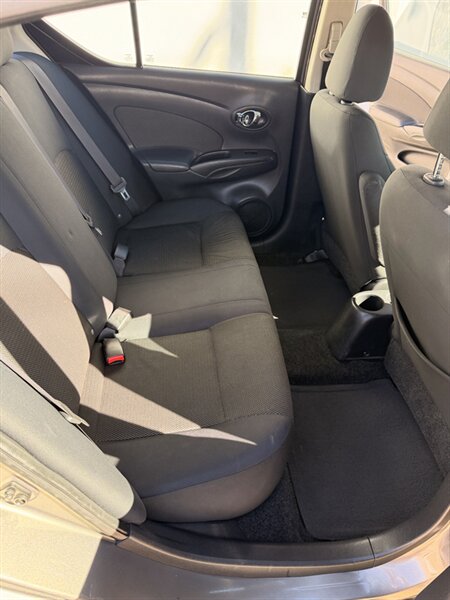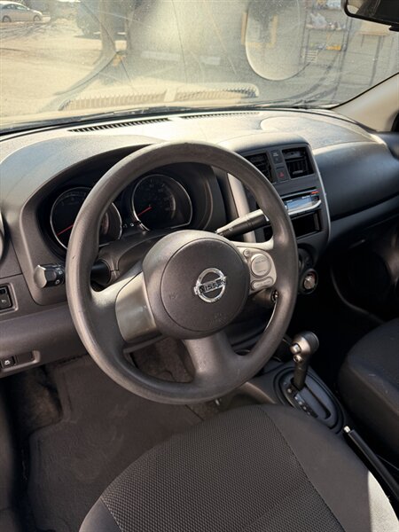 Introducing a 2013 Nissan Versa 1.6 S. This car has a great fuel economy, getting 26 MPG in the city and 35 MPG on the highway! As for factory default features, this vehicle comes with air conditioning, power mirrors, power windows, and an AM/FM/CD audio system with auxiliary input jack. Additionally, it has a tilt steering wheel, 60/40 split fold-down rear seats, and a tire pressure monitoring system. Overall this vehicle is in great condition and would make a great vehicle for someone looking for a fuel efficient and inexpensive car!